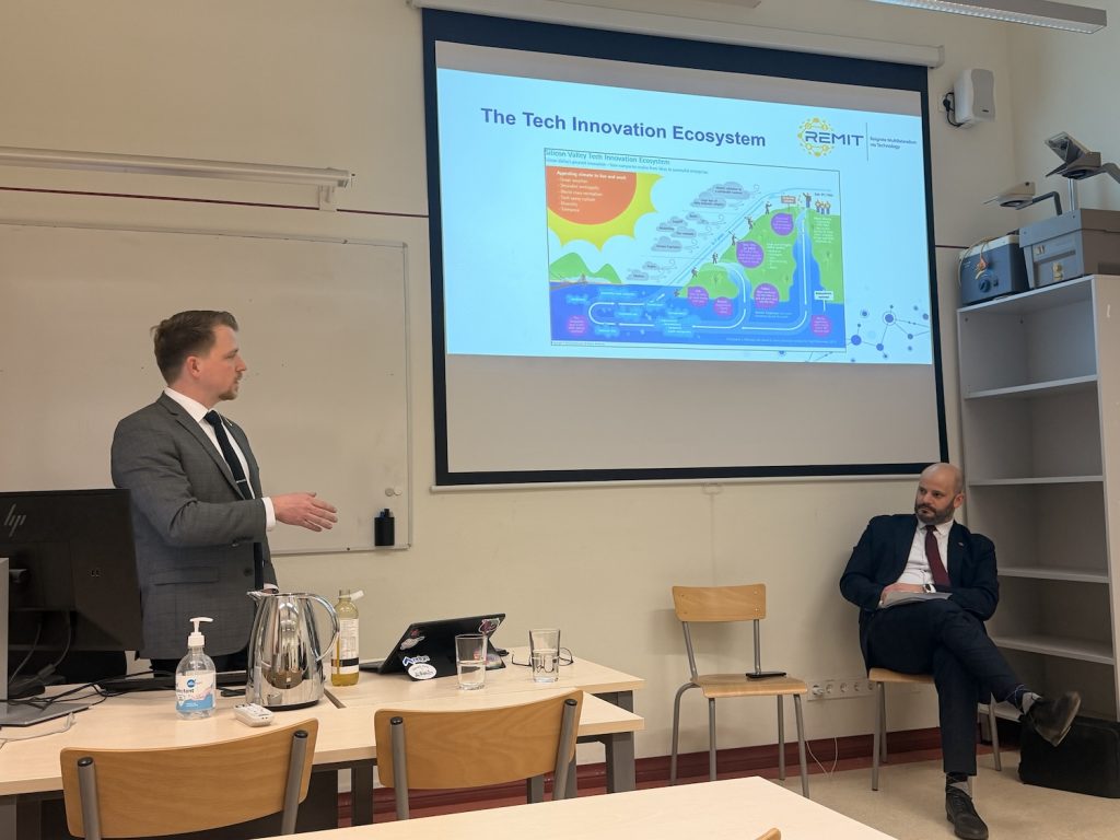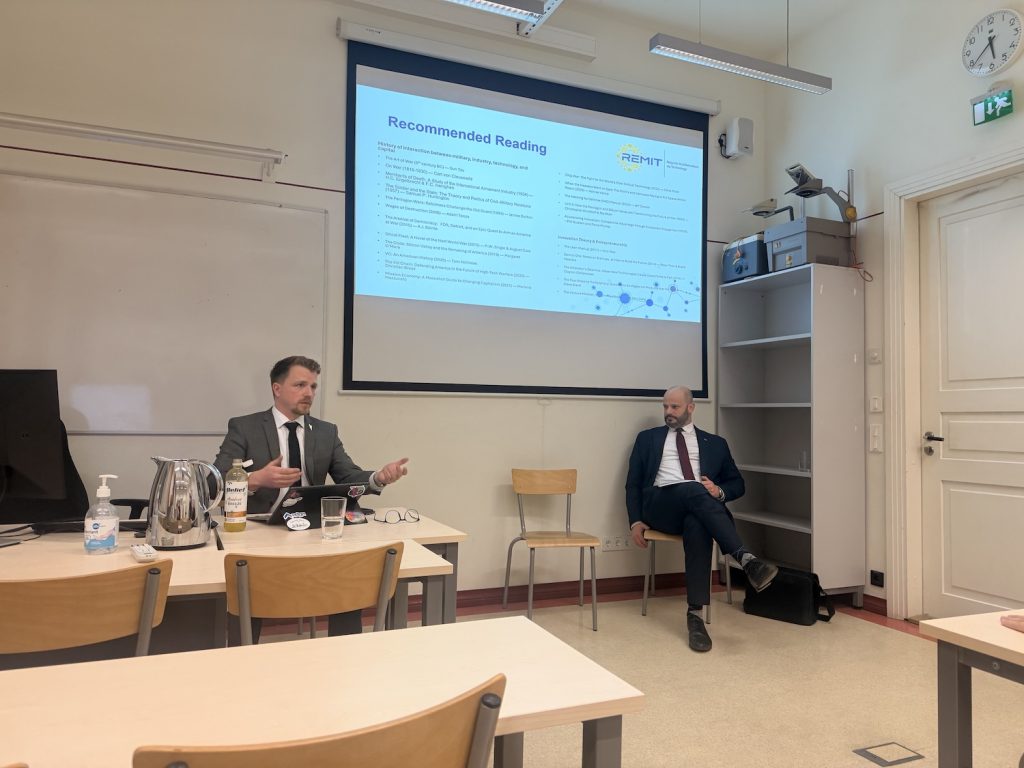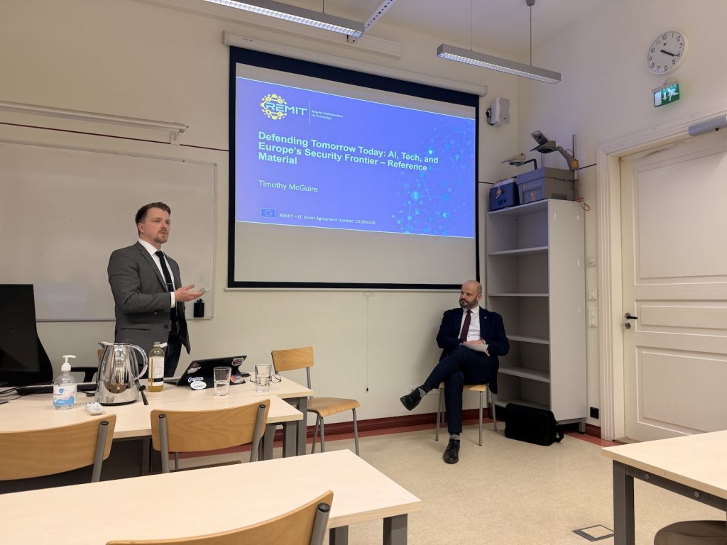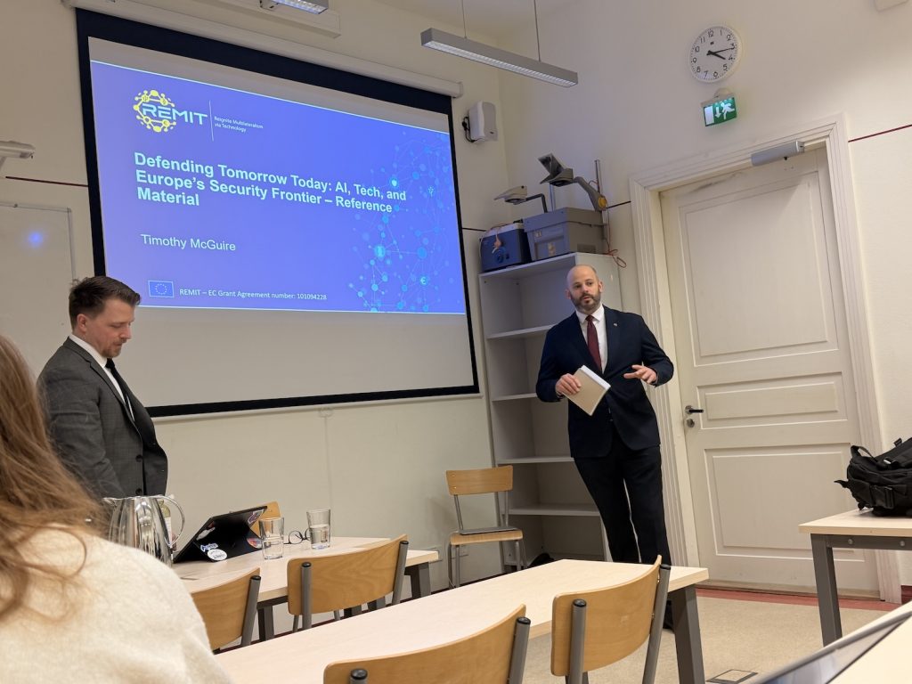 On November 21, 2025, the University of Tartu’s Johan Skytte Institute of Political Studies hosted a REMIT town hall event titled “Defending Tomorrow Today: AI, Tech, and Europe’s Security Frontier”, moderated by Timothy McGuire, former Head of Rapid Adoption at NATO DIANA and lead for Hacking 4 Defence Europe. McGuire, alongside host Louis Wierenga, guided participants through a wide-ranging discussion on Europe’s evolving defense-innovation landscape, highlighting the critical role of emerging technologies and AI in shaping future security.